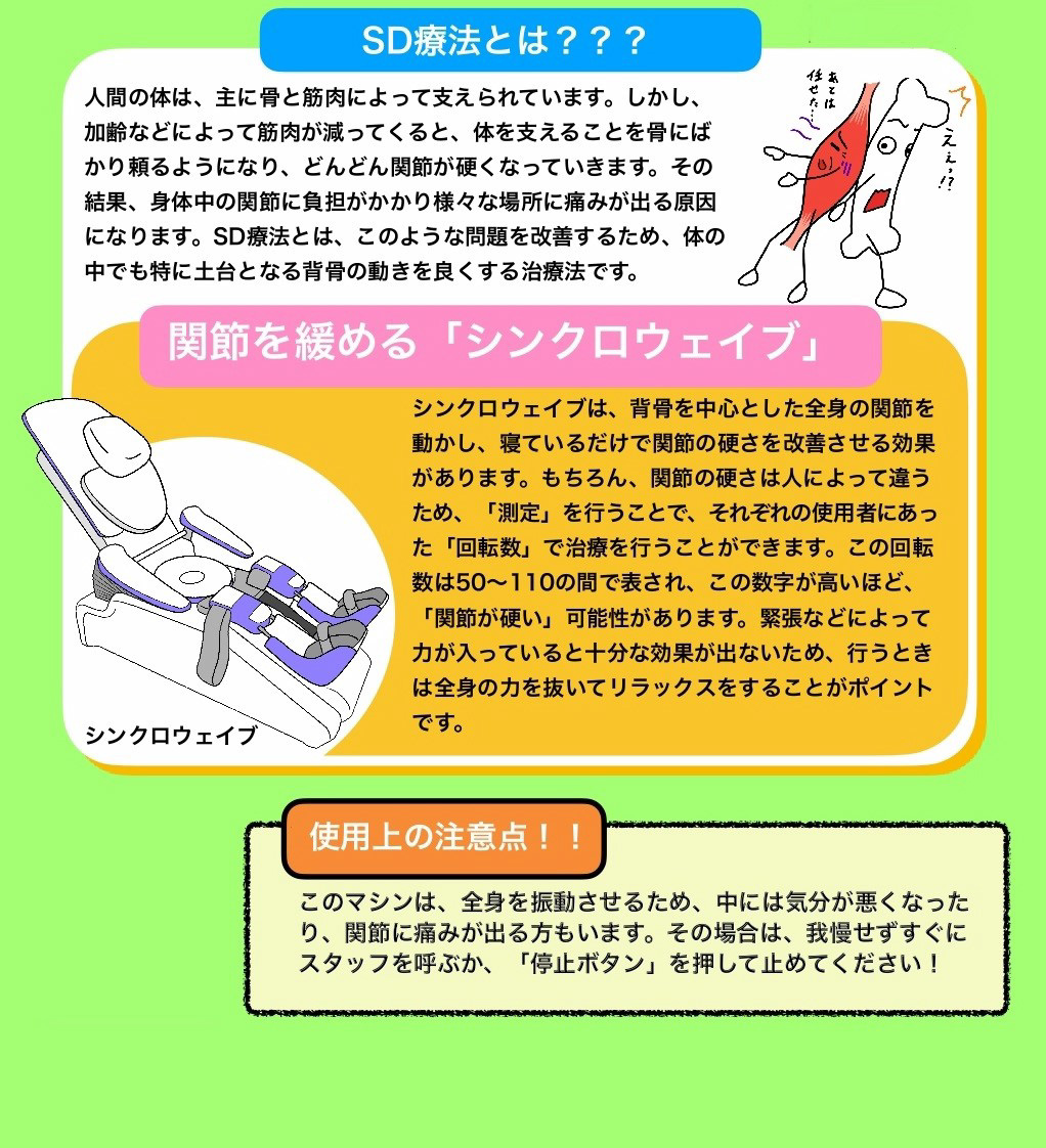 シンクロウェイブは、背骨を中心とした全身の関節を動かし、寝ているだけで関節の硬さを改善させる効果があります。